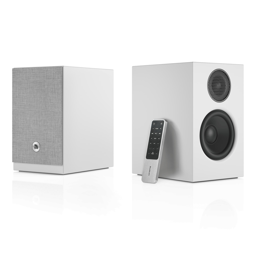 This multiroom active stereo speaker set delivers an impressive music and TV sound experience that surpasses soundbars, thanks to the wider soundstage provided by the stereo speaker pair. The A28 W is the new, upgraded version of the A28. It uses our new app with cutting-edge technology and delivers even better sound than its predecessor.